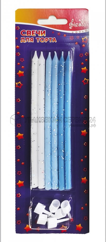 Свечи д/торта Голубой блеск с подставкой 14,5см (6шт/уп) (24) |