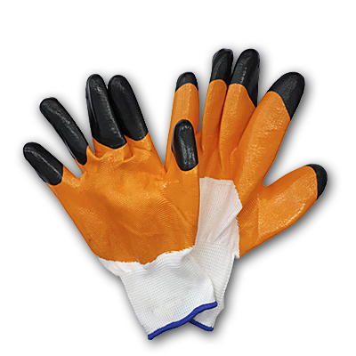Перчатки х/б ОБЛИТЫЕ ОРАНЖ-ЧЕРНЫЕ 2-е латексное покрытие нейлон (960/12)