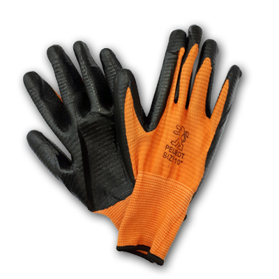 Перчатки ОБЛИТЫЕ ЧЕРНО-ОРАНЖЕВЫЕ стретчевые нейлон (600-4) (600/10)