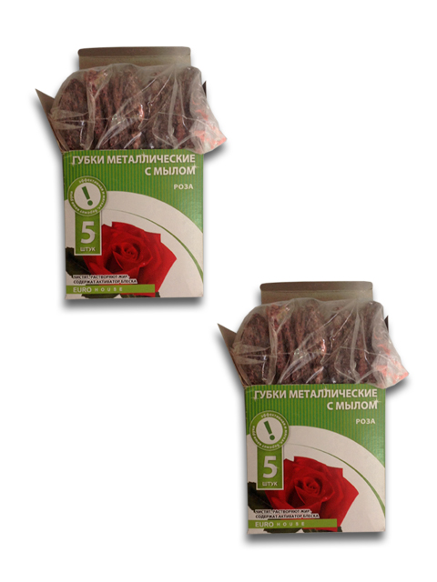 Губка для посуды металлическая с мылом 5 шт. (200)