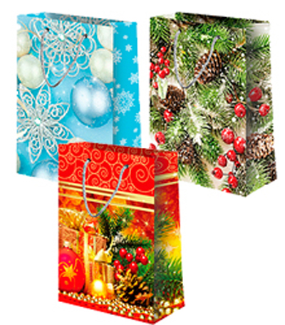 Пакет бумажный с ручками 14*7*20 из ламинированной бумаги Новый Год (12)