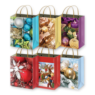 Пакет бумажный с ручками 12+8*36 из ламинированной бумаги (под бутылку) Новый Год Ассорти