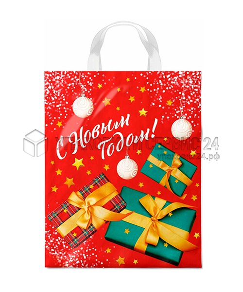 Пакет с петлевой ручкой 28*35см (55мкм) НГ День подарков (500/25)