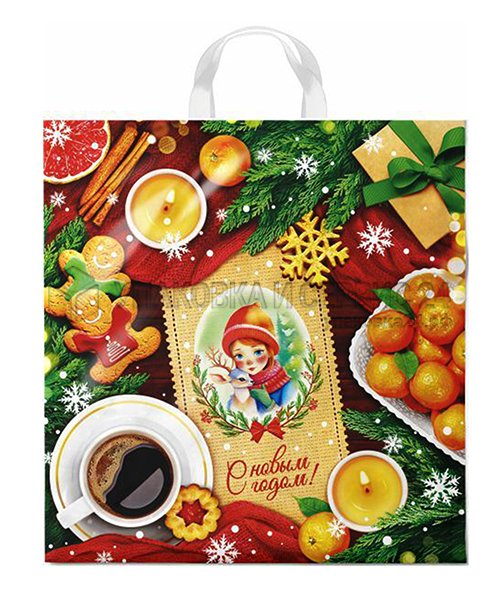 Пакет ПНД с петлевой ручкой 38*42см (40мкм) НГ Новогоднее пожелание (500/25)