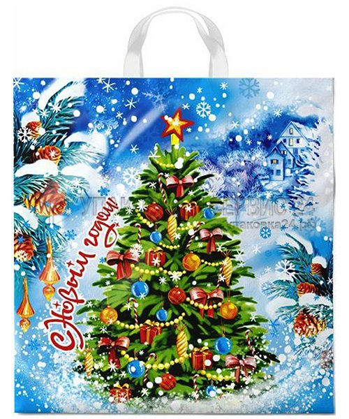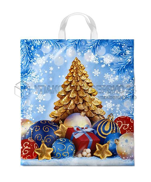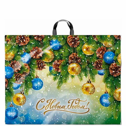 Пакет с петлевой ручкой 71*55см (90мкм) НГ Голубая ель (200/25)