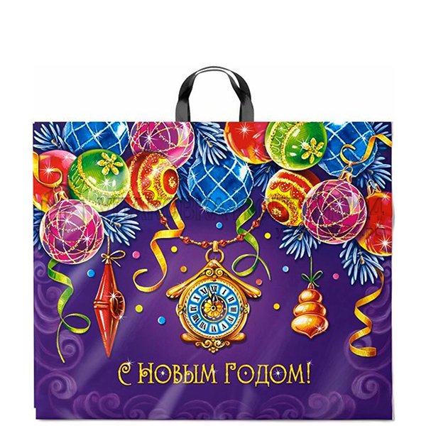 Пакет с петлевой ручкой 60*50см (70мкм) НГ Старинные часы (250/50)