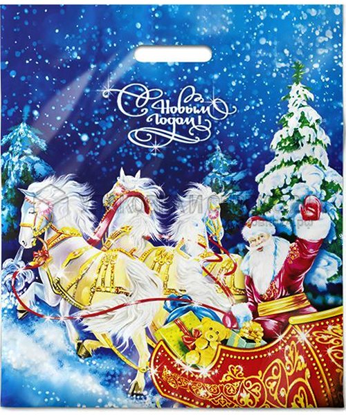 Пакет с прорубной ручкой 40*47см (45мкм) НГ Сани (1000/50)