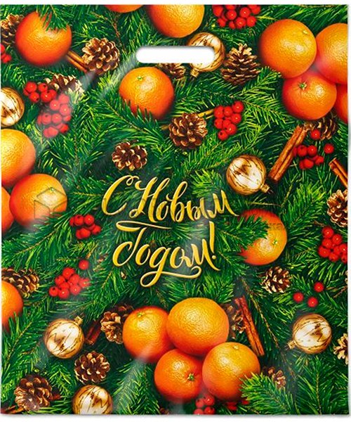 Пакет с прорубной ручкой 40*47см (45мкм) НГ Спелая зима (500/50)