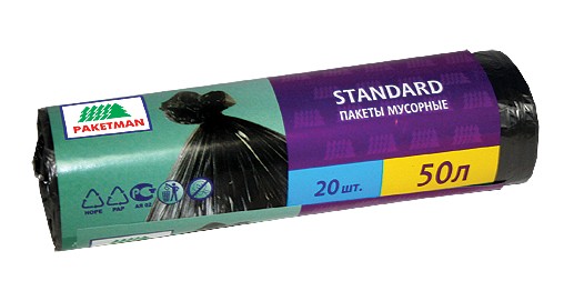 Мешки д/мусора 50л в рулоне 20шт ПАКМАН (100)