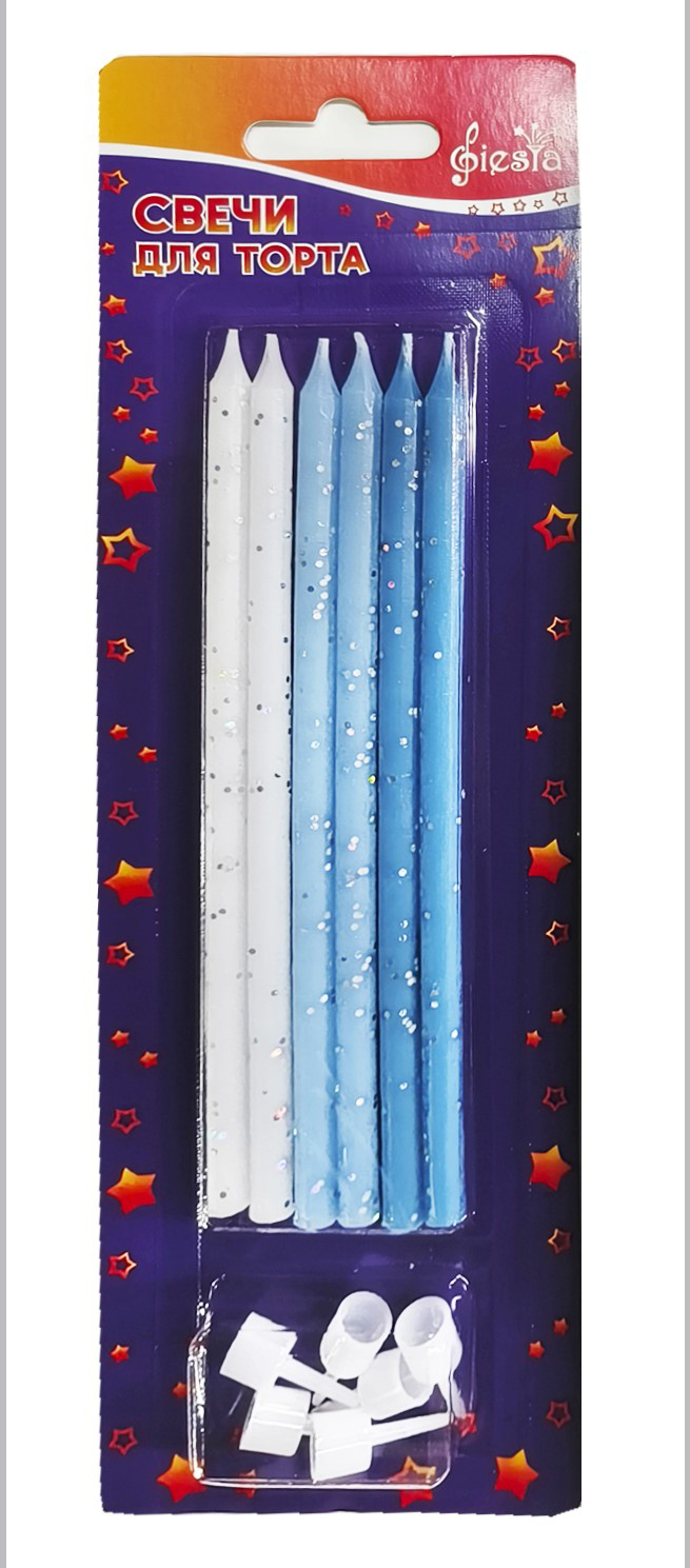 Свечи д/торта Голубой блеск с подставкой 14,5см (6шт/уп) (24)