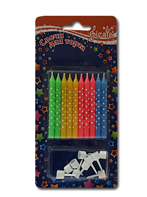 Свечи д/торта Точка Неон с подставкой (10шт/уп) (24)