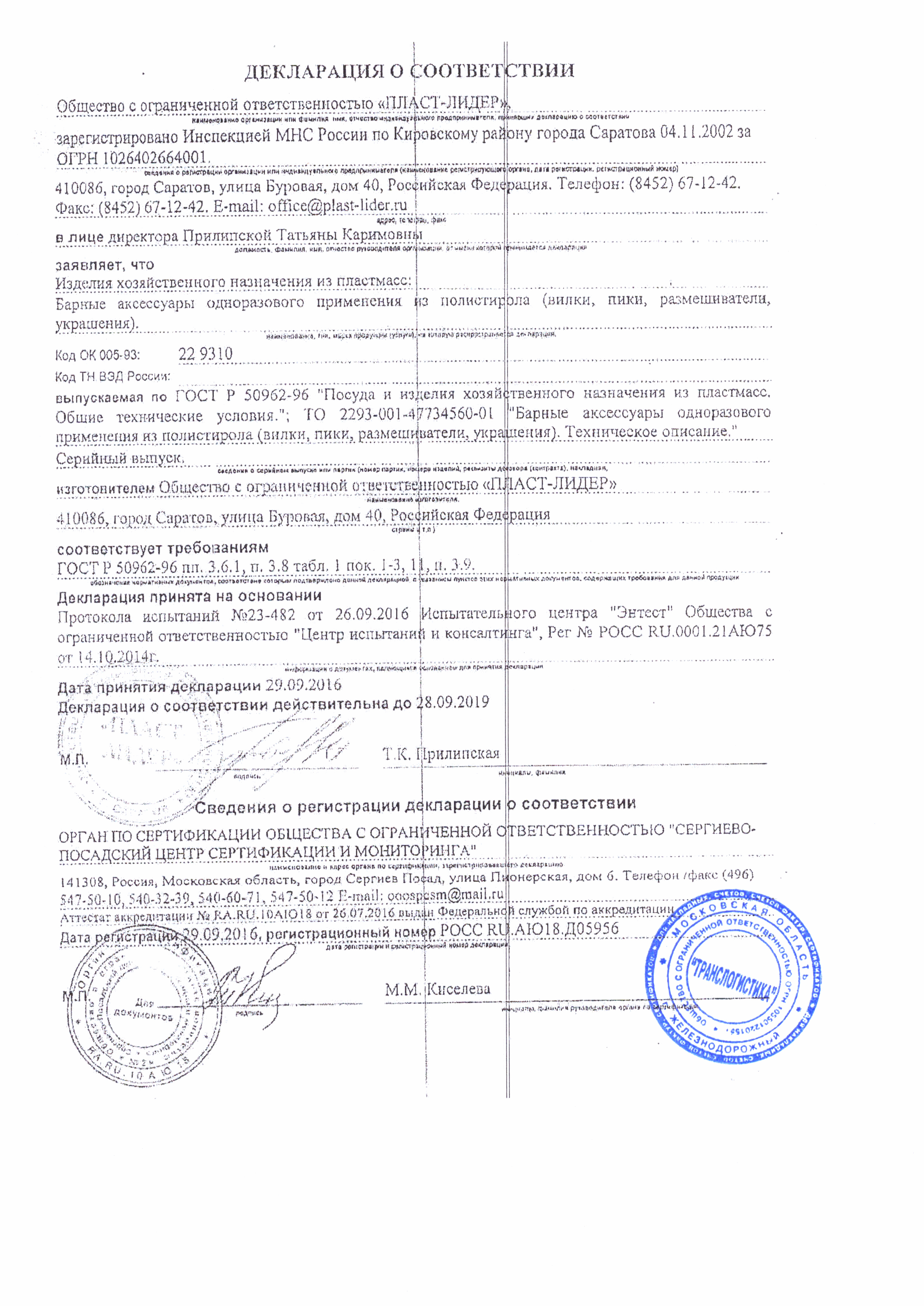ПИЩЕВАЯ УПАКОВКА (Стиролпласт)